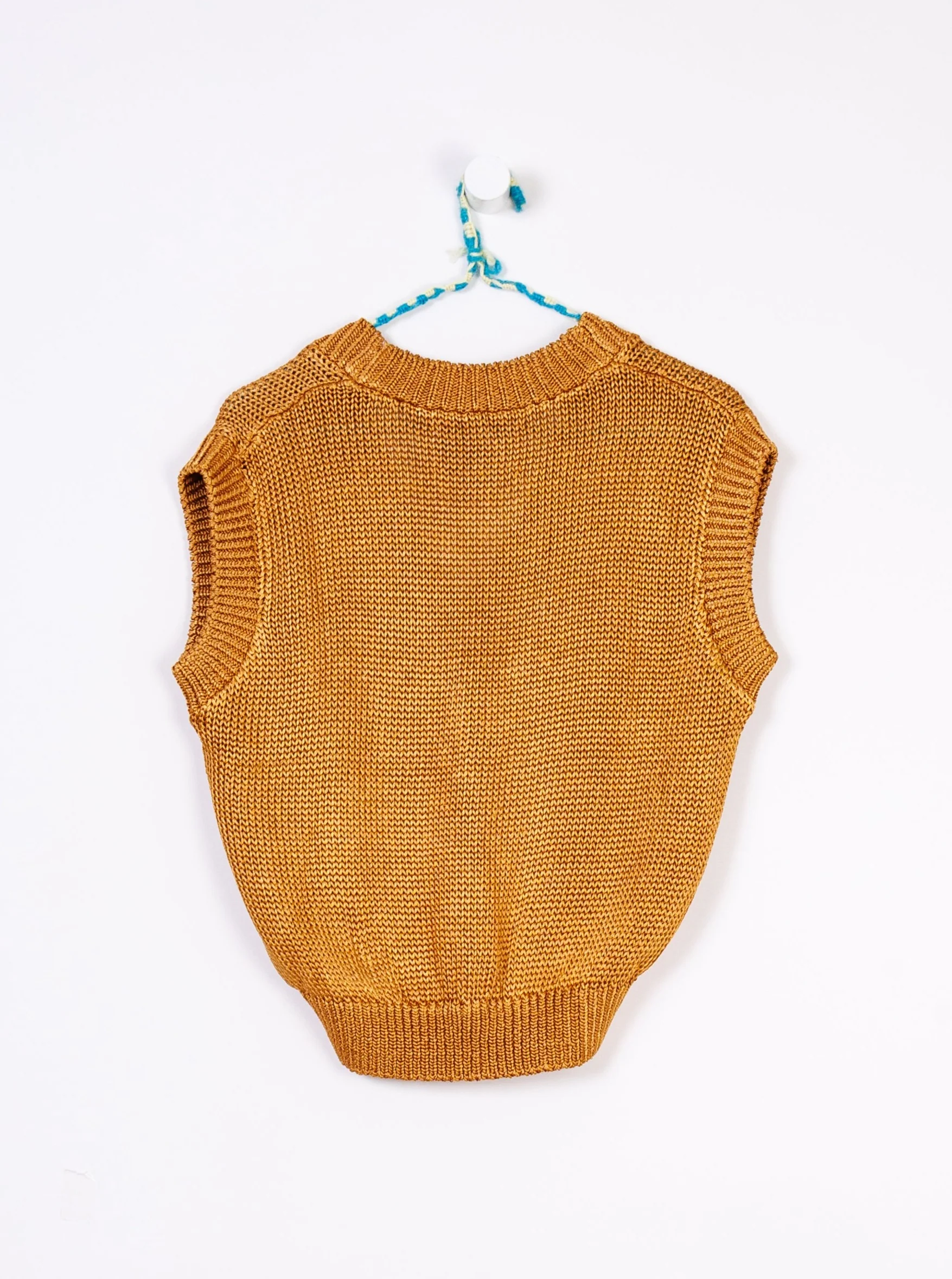 A playful take on the shrunken sweater vest, this chunky style is loosely knitted with viscose yarn. Carefully twisted together to create a 5-ply silky & voluminous shape. This classic, sophisticated style can be worn on its own or layered over a simple t-shirt.