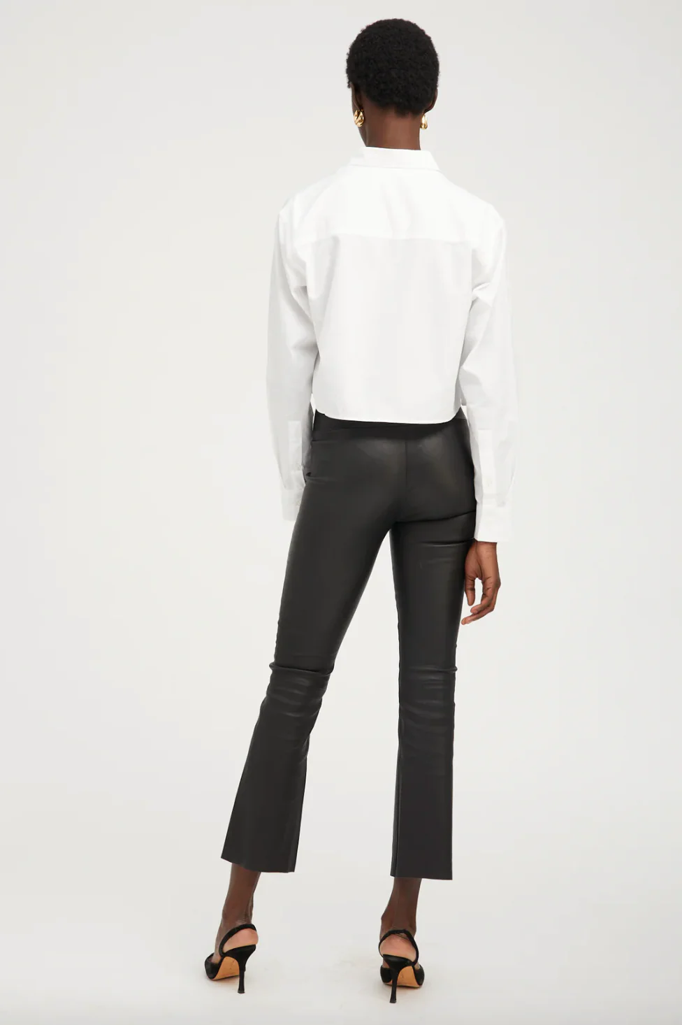 Ankle Flare Leather Pants in Black